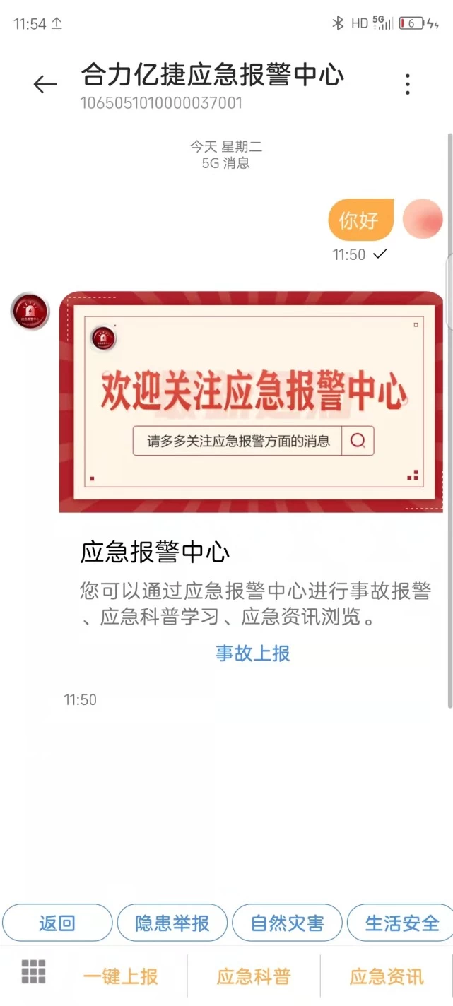 11月,正值消防主题宣传月,北京移动与中移互联网有限公司及合力亿捷共同打造了基于5G消息的消防应急应用“消防应急报警中心”,为全国超过1800万5G消息终端用户提供高效便捷的应急报警服务。据了解,符合终端机型的用户通过手机原生短信入口搜索“消防应急报警中心”,即可不安装、不关注、不注册,直接操作,发送的报警、隐患图文可直达报警中心,实现敏捷消防报警。