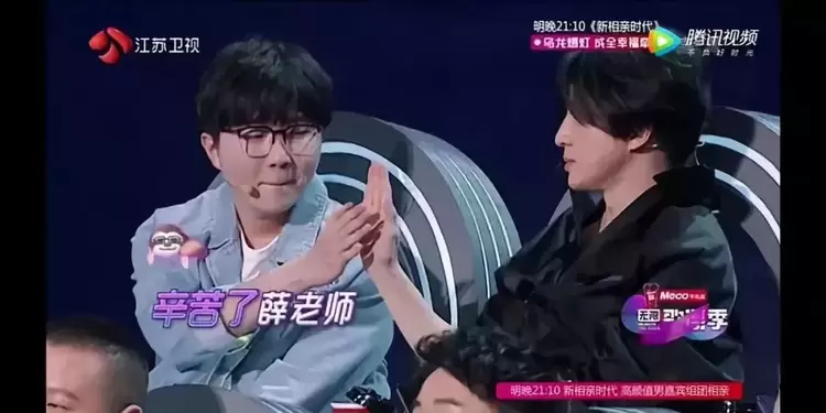 比如,看到胡一天和女团成员在互动上亲密表演,他和魏大勋在台上捂着脸偷瞄,像极了我们小时候看到亲密戏的那种鬼鬼祟祟。