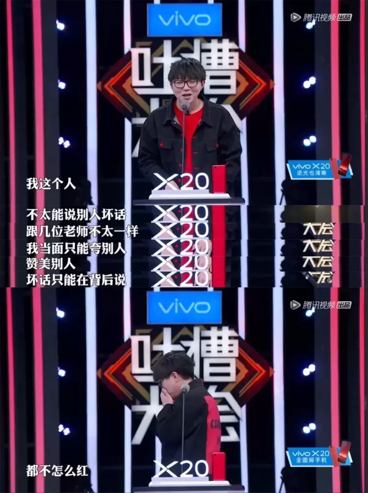 初上《吐槽大会》,毛不易虽然是第一次参加脱口秀,但是这口才很让人觉得惊喜,在大家轮番吐槽他之后,他一上场就把这些料都还回去了,引发台下嘉宾大笑。