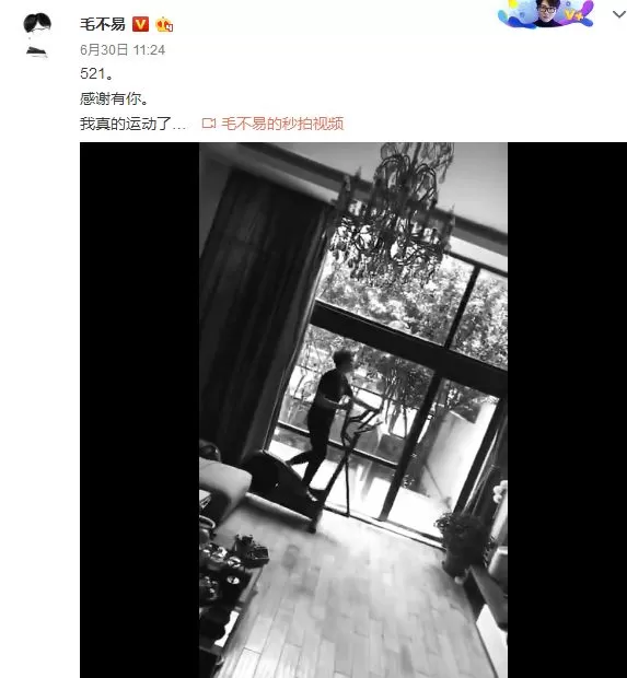 颜值为何上升这么快?八姐发现毛老师是做了很多努力,首先是运动,前段时间频繁运动减肥,还在微博上发了自己在家健身跑步的视频,很拼啦。