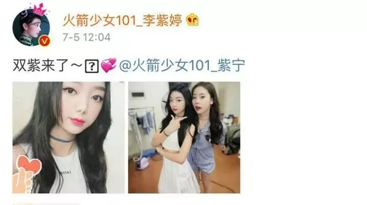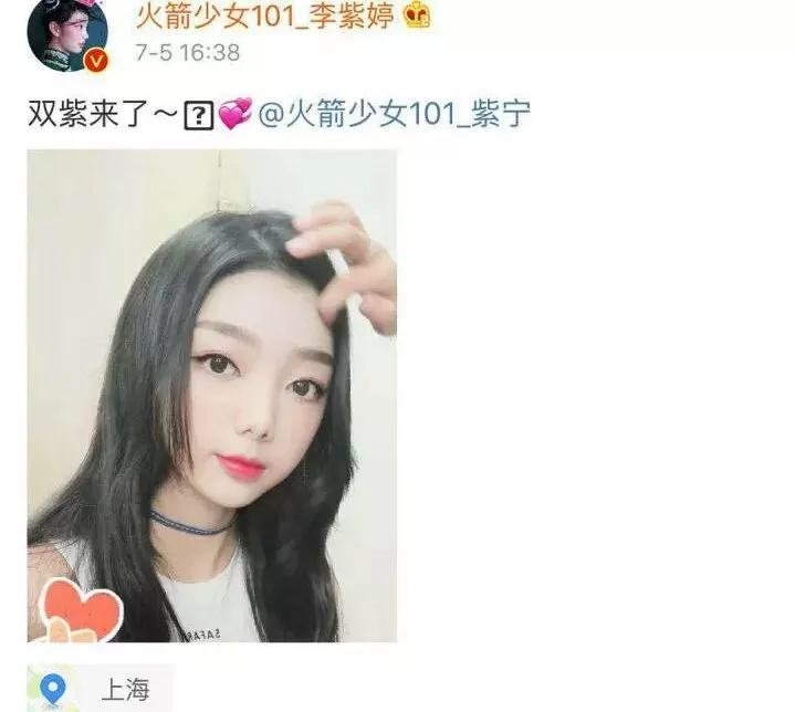 7月5日,李紫婷上午发了和紫宁的合照。