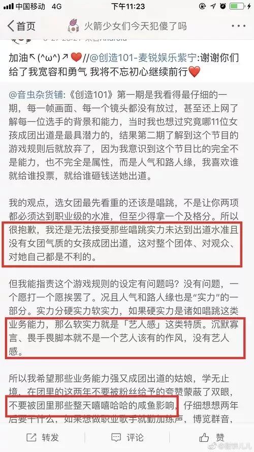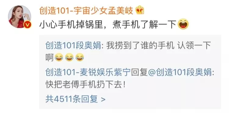 火箭101的少女们立刻排排坐去留言,还真是有趣。