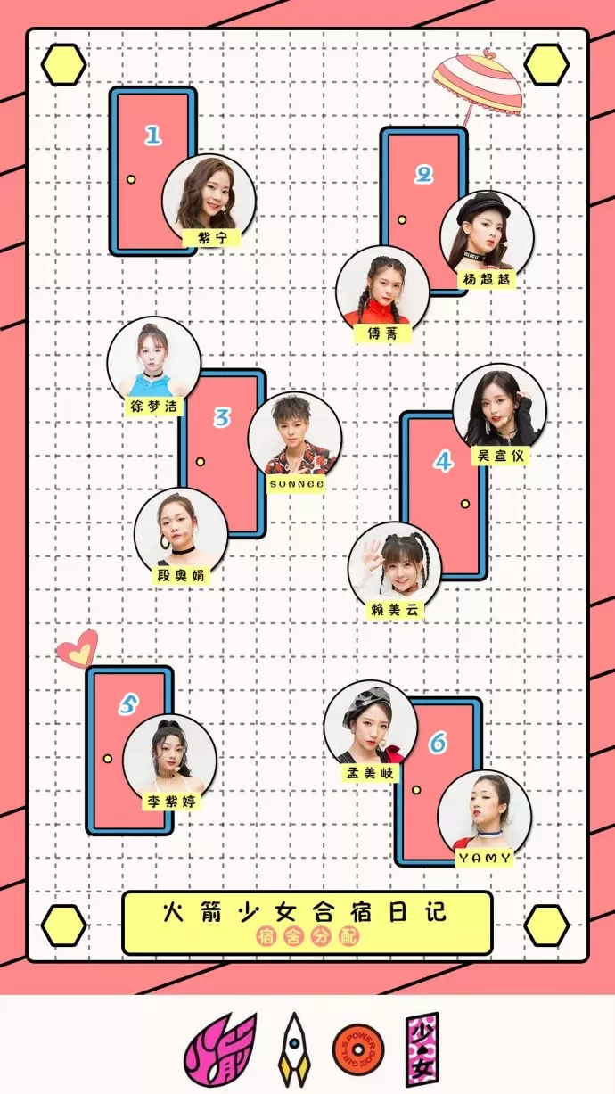 别墅里总共有六个房间是为女生们准备的,具体的分宿舍情况如下▼