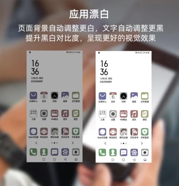 优秀的功能加持无疑会让优质的屏幕表现得如虎添翼。海信阅读手机A7系列针对水墨屏触控翻页刷新特点,提供了清晰、均衡、流畅、极速四种应用显示模式,并进一步加入动态刷新、高对比度文字、字体抗锯齿、应用漂白等独有的功能算法以增强阅读感官。比如,高对比度文字与应用漂白均可漂白背景,加黑文字,提升内容显示的对比效果,让阅读更悦目。而字体抗锯齿功能在文字抗锯齿技术2.0版本的加持下,可让文字显示更加锐利、清晰。