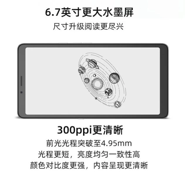 海信阅读手机A7系列在显示方面带来硬件和算法双方面的大幅度提升。其中屏幕方面,海信A7经典版采用了元太独家定制水墨屏,提供如同纸质书籍的无蓝光阅读体验,而屏幕尺寸相比上一代产品提升至6.7英寸,像素密度达到300ppi,结合超窄边框设计,可视面积再增加33%,有效增加单页内容显示量,进而降低读者的翻页频度,带来更高的阅读舒适度。