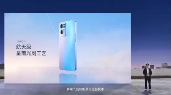 时尚一直是OPPO Reno系列的基因,最擅长用色彩来诠释时尚潮流的内涵。Reno7系列再次挖掘手机潮流设计的新方向,全新配色“星雨心愿”创造性地将航天级光刻工艺应用于手机后盖,通过激光显影技术在晶钻工艺基础上二次光刻,形成120万道细密光栅纹理,让玻璃后壳具备流星雨般的视觉观感和立体触感。在机身正面,Reno7系列采用行业领先的极窄边框工艺,将屏占比提升至92.8%,视觉一体感更强。