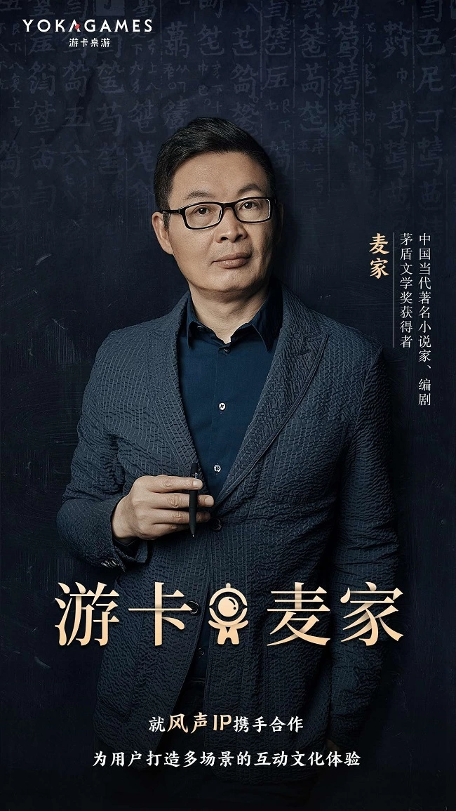 11月29日,游卡与当代著名小说家、编剧、茅盾文学奖得主麦家达成合作,双方将以超级IP《风声》为起点,通过深度共创和跨界融合,充分发挥双方“IP内容价值”+“多元场景开发能力”的协同效应,在桌游、剧本推理等互动文化场景中,共同探索优质文化IP的场景化发展路径,为用户打造多场景的互动文化体验。