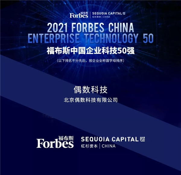 近日福布斯中国首次发布了 2021 年中国企业科技50强,偶数科技凭借过硬的技术实力和优异的市场表现从众多备选企业中脱颖而出,获得了福布斯众多评委的认可进入榜单。