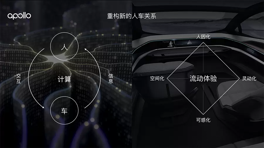 百度在智能驾驶交互领域,基于 人、车、环境和计算、构建新的人车关系。为未来的旅行,提供更舒适的体验。