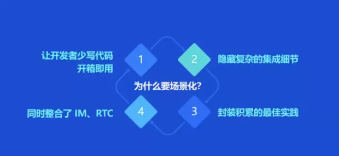 今年,融云在业内第一次提出了场景化 SDK 概念。根据不同场景,融云将自己的最佳实践直接封装成 SDK。语聊房、直播、呼叫三大场景化 SDK 横空出世,开发者无需自己再写代码,直接调用 API 接口,就能以更少的时间成本,获取更便捷、更高质量的开发实效。