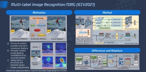 3)多标签识别:多标签识别是内容理解和内容审核的场景中非常通用的技术问题。之前很多技术都是采用RNN或者GCN来网络结构来处理标签之间的共性依赖问题,这种方法没有考虑到标签共性依赖,导致系统无法有效分辨出标签及临近标签之间的关系,大大降低了图片识别的准确度。
