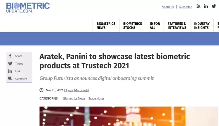 中文标题:巴黎TRUSTECH 2021,亚略特展出“辨识万物,随时随地”生物识别解决方案(Aratek touts latest “identify anything, anytime, anywhere” biometric solutions in TRUSTECH Paris 2021)