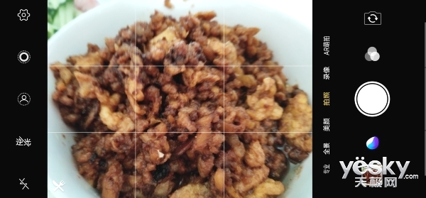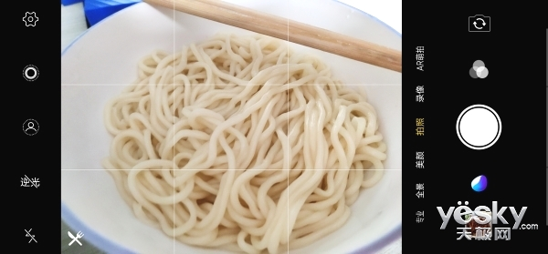 目前,vivo NEX已经能够识别人像、夜景、花卉、美食等多达17中场景。比如下面这份我自己做的炸酱面,相机还是很给面子的识别出了“美食”,因此拍摄出的照片秀色可餐(相比亲手制作的实物,看照片更有食欲)!