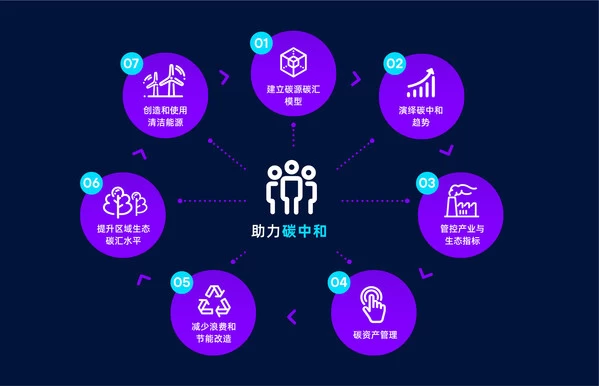 平台基于云计算、大数据、遥感分析等技术,提供低碳综合模型、全景展示、建筑运营、能耗分析、交通承载、水域监测预警及植被演进分析等城市低碳生态管理的闭环服务,为政府、企业客户构建可持续发展目标评估体系,提供精细化低碳生态管理解决方案。