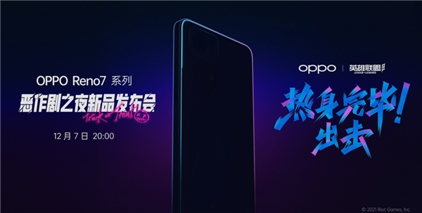 11月25日,OPPO推出了Reno7系列新品,凭借全球首发的超感光猫眼镜头、航天级星雨光刻工艺、星环呼吸灯、90fps 极限稳帧等诸多亮点功能与新技术,在首销当天拿下了亮眼的成绩。12月6日,OPPO官方微博正式宣布,将于12月7日20:00举办主题为“恶作剧之夜”的OPPOReno7Pro英雄联盟手游限定版发布会,引起了很多人关注。