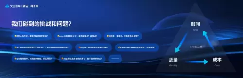 基于字节跳动9年研发经验积累的应用开发套件MARS,我们的工程师实现了质量、成本、时间三者兼得,在不可能三角的突破上,给出了火山引擎方案。