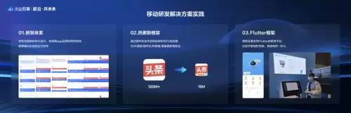 Flutter框架。多端开发是一个绕不开的话题,如何快速实现一次开发多端运行?作为首款全面支持flutter的开发平台,我们在flutter框架、组件、开发者工具、开发流程、测试、监控等场景上提供全面的支持。以flutter框架为例,我们做过一个测试,字节版本比开源社区版本的首帧耗时降低了35%。跨多端场景下,flutter极大地降低了开发的人力成本。