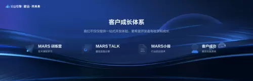 除了提供功能强大的产品,我们还希望我们的开发者用户能够依托平台获得技术提升和持续成长。为此火山引擎推出开发者成长体系,包含MARS训练营、MARS TALK、MARS小报、客户成功计划等,希望能够通过这些方式帮助开发者学习技能、用好工具。