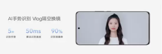 针对用户拍摄Vlog时不方便触控操作的痛点,通过协同AI多媒体学习、芯片平台性能调校、摄像头功能调用、系统级功耗控制等多项领先的技术能力,为用户带来了“AI手势识别,Vlog隔空换镜”的创新功能,用户通过隔空手势即可操作完成整个Vlog的拍摄。