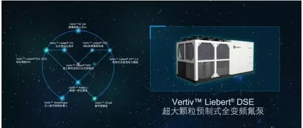 Vertiv Liebert® DSE超大颗粒预制式氟泵方案,是应用这项技术的代表性产品,为数据中心提供单机更大冷量、更便捷的整体解决方案。Liebert® DSE空调能跟随室外环境温度全自动调节,实现最佳匹配节能,在不同室外气候条件下,系统具备全变频压缩机、部分混合、完全经济三种运行模式,其中完全经济模式可以实现pPUE1.05的出色水平。同时,Liebert® DSE空调无需任何水处理,WUE为0,而且由于没有融入室外空气,也避免了室外空气的污染,实现低碳运行。