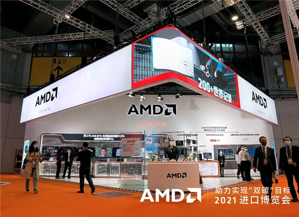 在刚刚结束的第四届中国国际进口博览会上,全球高性能计算领导者AMD首次参与其中,在集成电路专区设立了以“助力实现双碳目标”为主题的展台,全面分享和展示了包括第三代AMD EPYC处理器和新一代Radeon Pro专业显卡等在内的多项先进产品和绿色技术赋能解决方案。