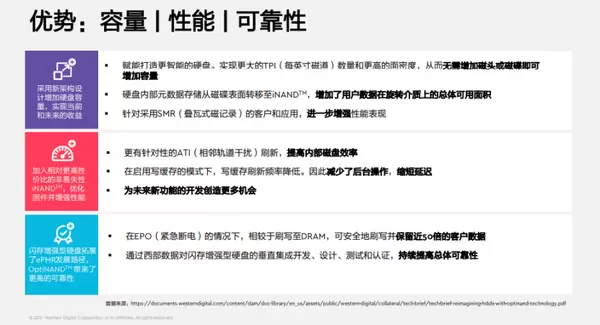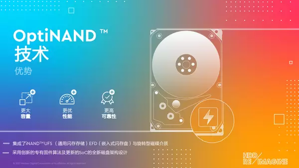 今年9月份,西部数据通过将NAND闪存与HDD产品进行垂直整合,开发出用户闪存增强型硬盘的OptiNAND技术,受到头部云服务商的广泛关注。刘钢表示:“OptiNAND就是把HDD技术和闪存技术做了深度优化和整合,并在同一个设备里实现。”据了解,OptiNAND技术集成iNAND UFS EFD与旋转型磁碟介质,融入全新的固件算法和SoC升级。