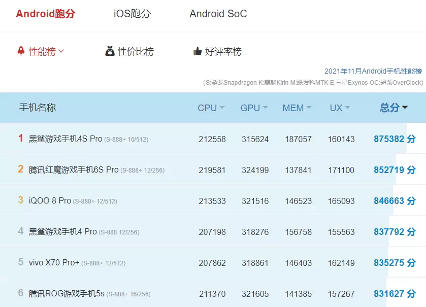 安兔兔是国内知名度比较高的综合性能测试软件,能多维度地对CPU、GPU、AI、内存等进行测试,较为全方位地了解芯片平台的性能表现。此次,新骁龙8的安兔兔成绩比较稳定地超过了100万分大关,也是目前骁龙移动平台的新高。