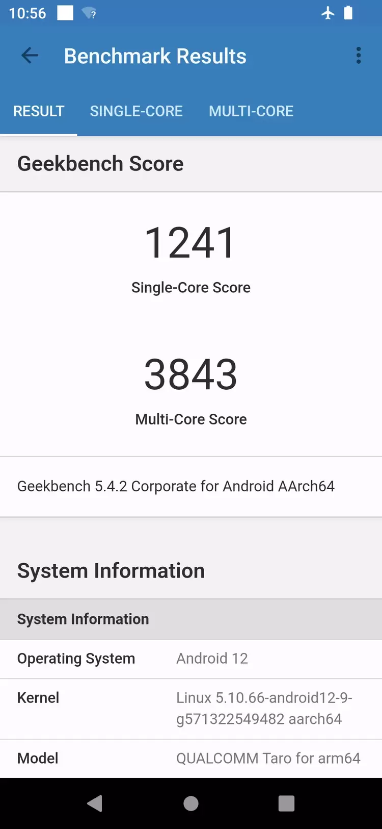 -GeekBench(v5.4.2):单核1241分,多核3843分