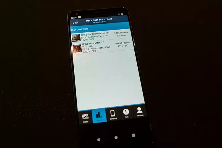 GFX bench是厂商和用户常用的的GPU测试软件,我们现场测试了Manhattan(曼哈顿离屏)和Car Chase(飞车离屏)两个场景,测试得到的帧率分别为176Fps和98Fps;