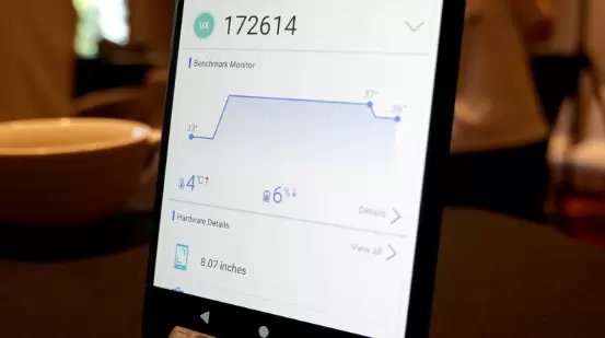 又比如说,在我们多次使用安兔兔评测进行连续测试时,可以看到跑分前机器的内部温度其实就不太“凉快”,但在一轮测试跑下来后,温升的控制却极为出色,甚至在放了一小会的情况下,温度还降低了一些。