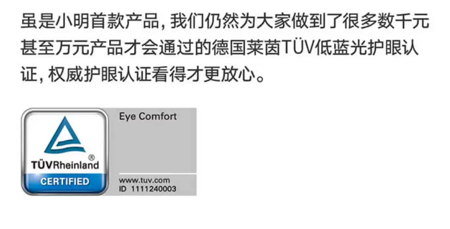 投影仪的漫反射画面,对眼睛刺激小,长时间看剧、刷网课也不会出现眼睛疲劳的感觉,比液晶电视护眼更有优势。而且小明Q1还拥有德国莱茵TÜV低蓝光护眼认证,双保险用心呵护孩子眼睛。