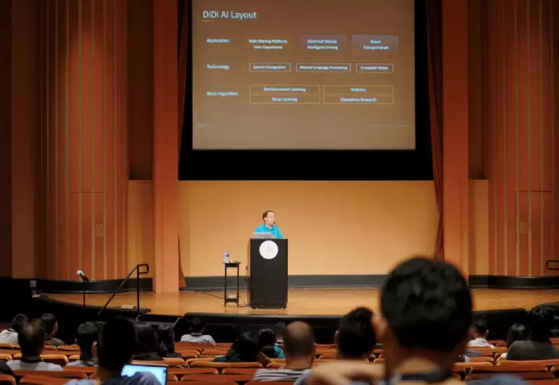 (滴滴智能出行部负责人郄小虎在现场详解滴滴的科研合作经验以及人才培养机制)