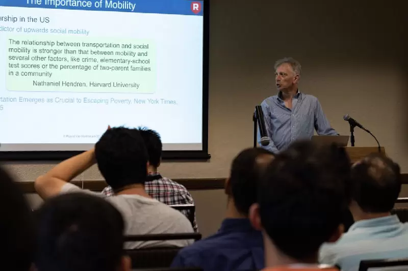 (密西根大学Pascal Van Hentenryck教授在研讨会上分享自己对未来出行变革的看法)