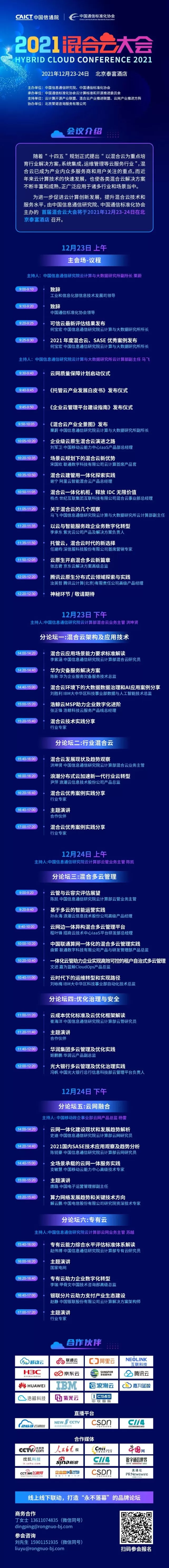 随着整个社会加快数字化转型步伐,云已经成为支撑数字经济发展的重要“数字底座”,是人们生产和生活方式的一部分。云服务市场的快速增长尤其是多样性的提升,促使混合云时代全面来临。今天,我们如何构建面向未来需要的高质量的云网?企业如何在数字化转型中实现多云管理?混合云又将走向何方?2021年12月23-24日即将在北京举办的“2021混合云大会”将解答上述疑问。