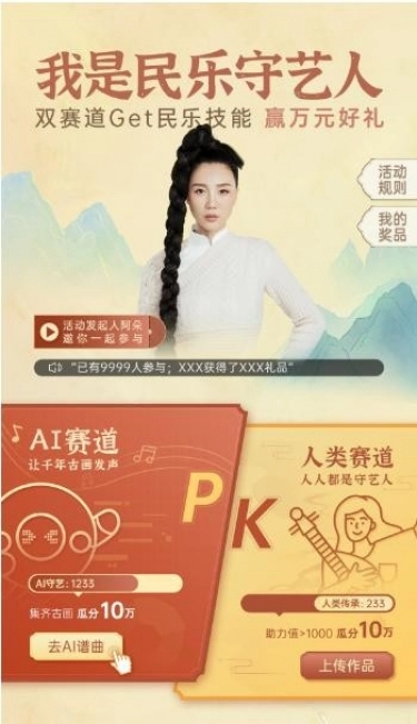 为了让“民乐”再次焕发生机,小布助手联合民族音乐人“阿朵”开展“民乐守艺人”活动。小布助手增添的AI谱曲功能让古典音乐突破传统的限制,通过AI谱曲VS人类演奏的双赛道活动为“我是民乐守艺人”活动增加了趣味感。