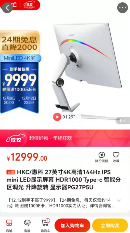 对于资深电影迷来说,显示器的差异会给观影效果带来巨大的感官落差。而如果你想拥有更加震撼的观影效果,那么为自己入手一台具备高超色彩表现力的MiniLED显示器绝对是一个不错的选择。比如这款HKCPG27P5U显示器,采用的是支持4K高清分辨率和144Hz高刷新率的IPS屏,不仅色彩表现更加优异,同时还拥有广视角的优势,搭载MiniLED背光技术,明暗之间为你打造影院级别的视觉体验。此外,这款显示器已经将响应时间降低到了1ms,可以说相当优秀,电竞玩家也可以无忧入手。12月13日Mini LED显示器京东小魔方新品日活动期间,更有直降2000元、24期免息等福利,你还在等什么?
