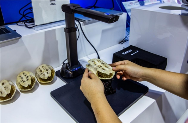 在此次的世界人工智能大会上,合合信息展示的智能文字识别技术,可以识别3600年前中国大地上的古老文字——甲骨文。在展示时,合合信息还将形象丰富的甲骨文重新排列组合后,再重新刻制在龟甲上,当“白富美”“单身狗”“买它买它”等流行词汇在会场上被识别出来时,不仅引起了一众人的捧腹,也让大家感受到了合合信息“黑科技”的实力。