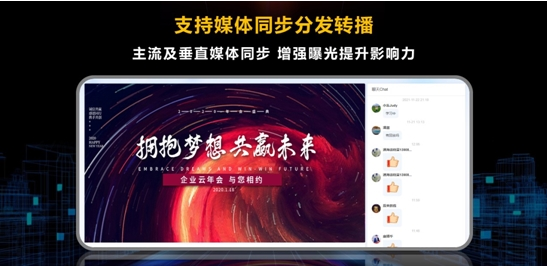 当您希望通过“云年会”作为载体加速企业文化传递、加强品牌树立、增加员工认同感和归属感,可选择通过云直播配合媒体同步分发转播的方式。