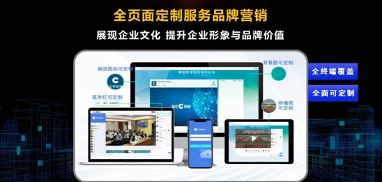会畅云直播全页面可定制,服务企业专属“云年会“打造,将企业文化元素全面渗透,以“云年会”序厅方式集合活动预告、邀请函、倒计时、签到等,支持微信端分享互动、公众号嵌入、一键发布微博、官网,h5页面嵌入,服务云端参会更为轻松,配合创意云端演艺空间构建,实现全新视觉系统震撼呈现,增强活动观看及参与体验。