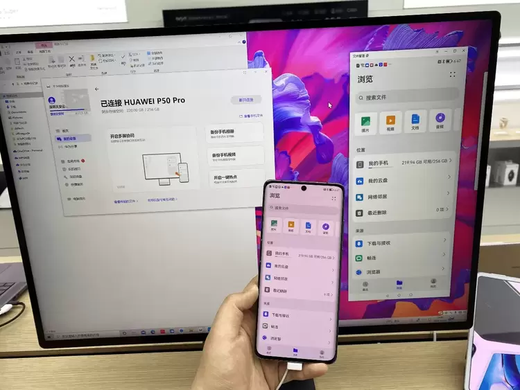 以前跨设备的文件传输主要靠微信的文件助手,文件大小受限不说,像视频、图片还会被压缩,很不方便。升级HarmonyOS 2之后,手机和电脑组合成超级终端,手机就像是插入电脑的U盘,不需要数据线连接,电脑的文件夹就会显示手机盘符,在电脑上可以直接调用手机里的文件,不需要传输。例如,我在电脑上编辑工作邮件,可以直接选择手机里的文件作为附件;用电脑微信给别人发图片,也可以直接从手机图库里选图发送。