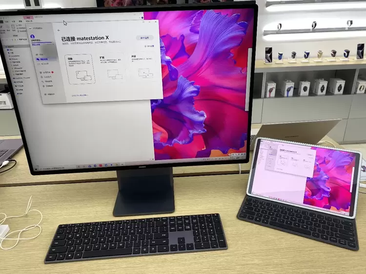 更神奇的是平板和电脑的组合,在超级终端界面连接平板和电脑后,有扩展、镜像和共享三种模式可选。镜像模式顾名思义,就是把电脑的屏幕复制到平板;扩展模式是平板成为电脑的副屏,我可以在电脑上写稿子,然后用平板查阅资料;共享模式最强大,我可以用电脑的鼠标键盘操作电脑和平板!你没有看错,电脑上的鼠标可以跨屏到平板上,在平板和电脑间拖拽、传送文件,就像在文件夹之间拖拽一样!用电脑的键盘也可以在平板上打字!