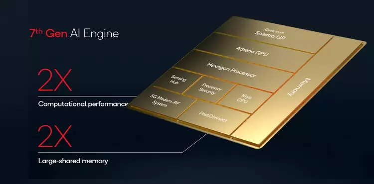 从硬件指标上来看,根据高通官方信息,第7代高通AI引擎包括具备超高性能、超高能效的高通Hexagon处理器,与前代相比,张量加速器速度和共享内存均提升至前代平台的2倍。