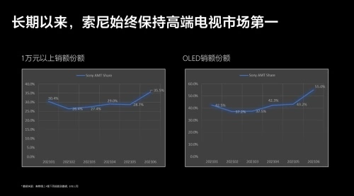 以高端、品质化驱动的索尼产品策略,引领行业的变化和发展的同时,更是获得了消费者的认可与好评。据权威媒体报道信息,618期间索尼在万元以上电视品类的销售额份额中占比高达35.5%;在被视为高端电视领域OLED电视市场中,索尼更是以55.0%的销售额份额赢得半壁江山。