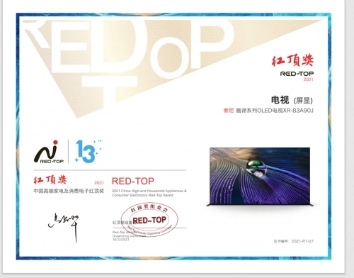 品质之选 实至名归! 索尼画谛系列OLED电视A90J斩获红顶奖