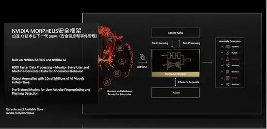 另外,当网络上的安全隐患越来越多,也就无法信任网络上的任何一个单元,包括人、包括设备,也就需要过云原生的架构、通过DPU、通过Morpheus等安全软件,保障用户在使用资源时能够保证数据安全、机器安全、设备安全。