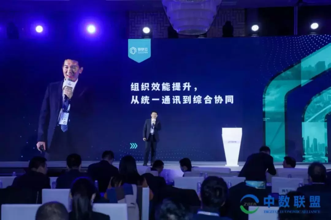 作为中关村数字经济产业联盟副理事长单位,容联云受邀出席了本届大会。容联云产品解决方案高级专家李礼以《组织效能提升,从统一通讯到综合协同》为题分享了数字经济时代,企业数字化办公协同的发展趋势。李礼表示,企业组织的数字化过程中有三个关键要素即:人、组织和业务。这其中“人”是最重要的要素,数字化的工具是为人服务的,最终也通过组织中人的应用创造价值。数字化转型能够通过数字化的工具和手段为人提供高效、智能化的沟通工具,实现零距离、无边界的即时沟通、高效传播和及时反馈处理;通过沟通的数据化实现对团队及个人目标事项的数字化辅助和管理;进一步实现在文档、任务、流程审批及项目管理等场景中的数字化协同,也实现人与人、人与事、人与物的高效协同。在此基础上,数字化转型就能够帮助组织实现在线的网格化、扁平化的组织架构;灵活、精准的人事管理和文化组织;个性化的员工培训与赋能。也即实现组织敏捷,保持对内外部环境变化的适应能力。