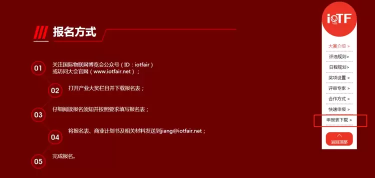 4、将报名表、商业计划书及相关材料发送到jiang@iotfair.net;