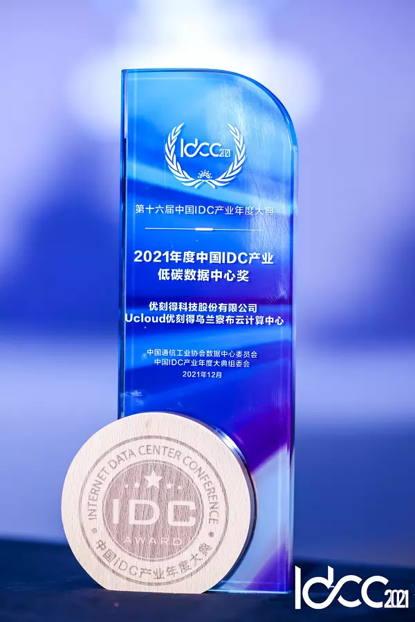 12月21日,在第十六届中国 IDC 产业年度大典上,UCloud优刻得乌兰察布云计算中心荣获“2021年度中国 IDC 产业低碳数据中心奖”。