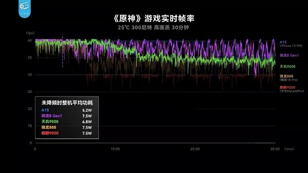 在《原神》游戏测试中,天玑 9000功耗和稳帧表现均领先新骁龙8