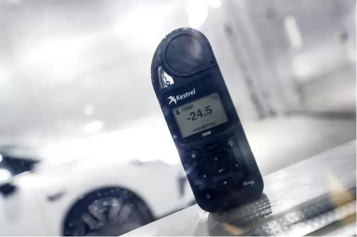 低温启动测试,国标的要求是在-18℃的温度下进行,而此次小鹏汽车为了更加真实地模拟冬季的极寒条件,实验先对小鹏P5进行长达8小时的专业实验舱极寒“浸泡”,直到全车内外温度降到-23℃。